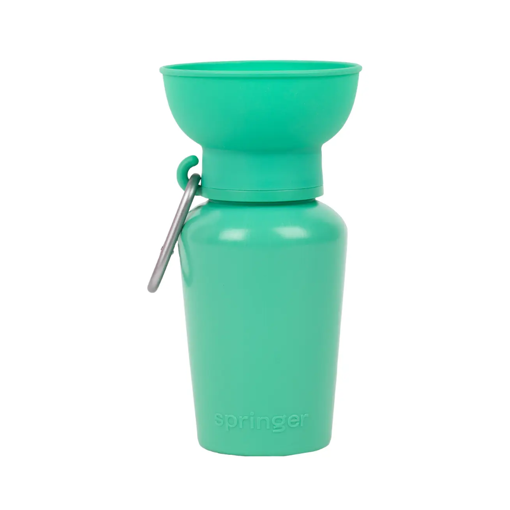 Ob auf Spaziergängen, beim Wandern oder auf langen Autofahrten: mit der Springer Pets Flip Reisetrinkflasche hat dein Hund jederzeit frisches Wasser dabei. Einfach den Deckel zum Napf umklappen, den Verschluss aufdrehen, die Flasche zusammendrücken – und schon füllt sich der Napf mit Wasser. Hat dein Hund genug getrunken, löst du den Druck und das überschüssige Wasser fliesst aus dem Napf zurück in die Flasche. Kein Verschütten, kein Wasser verschwenden!